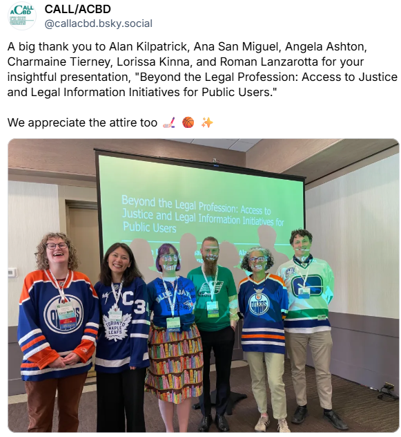 On Tuesday, May 26, 2025, I am co-presenting a session at the 2025 Canadian Association of Law Libraries with Ana San Miguel, Roman Lanzarotta, Charmaine Tierney, Lorissa Kinna, and Angela Ashton.